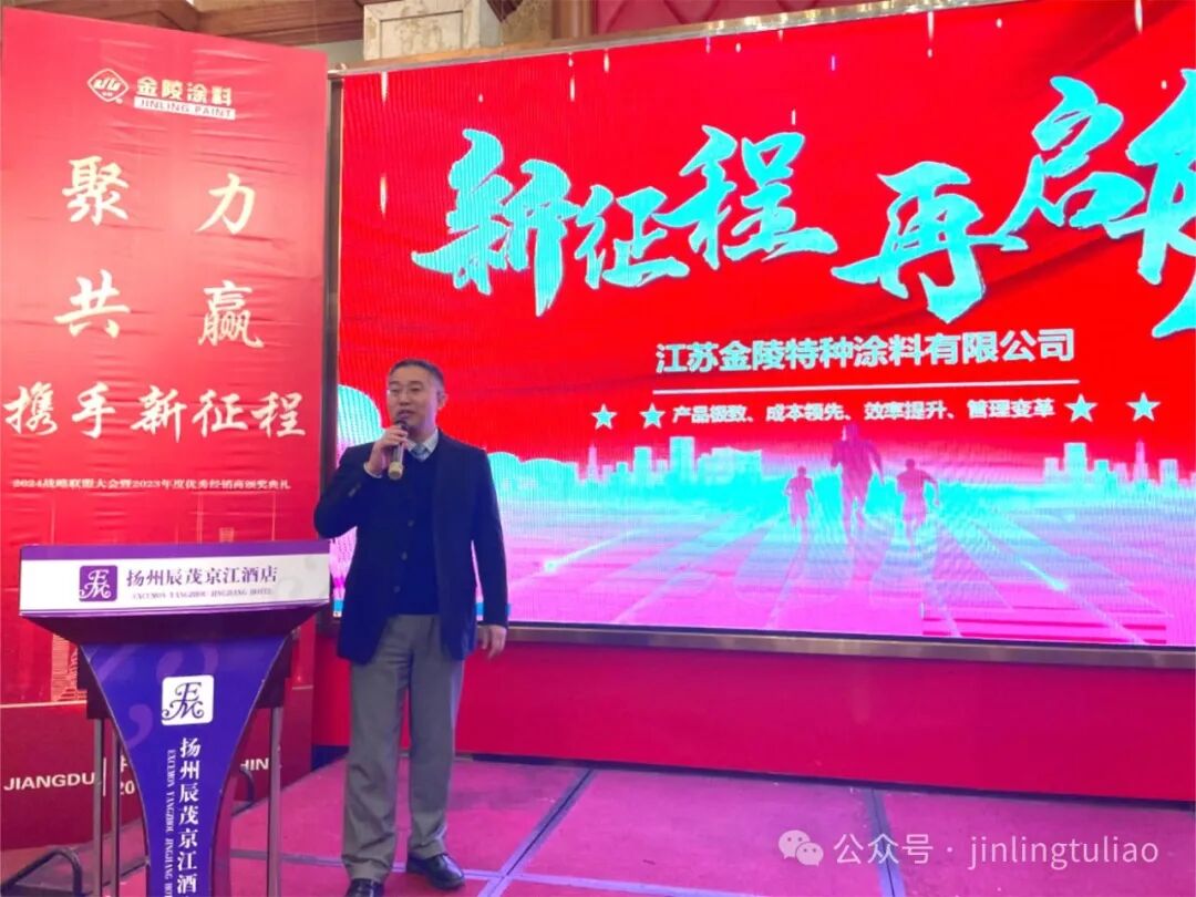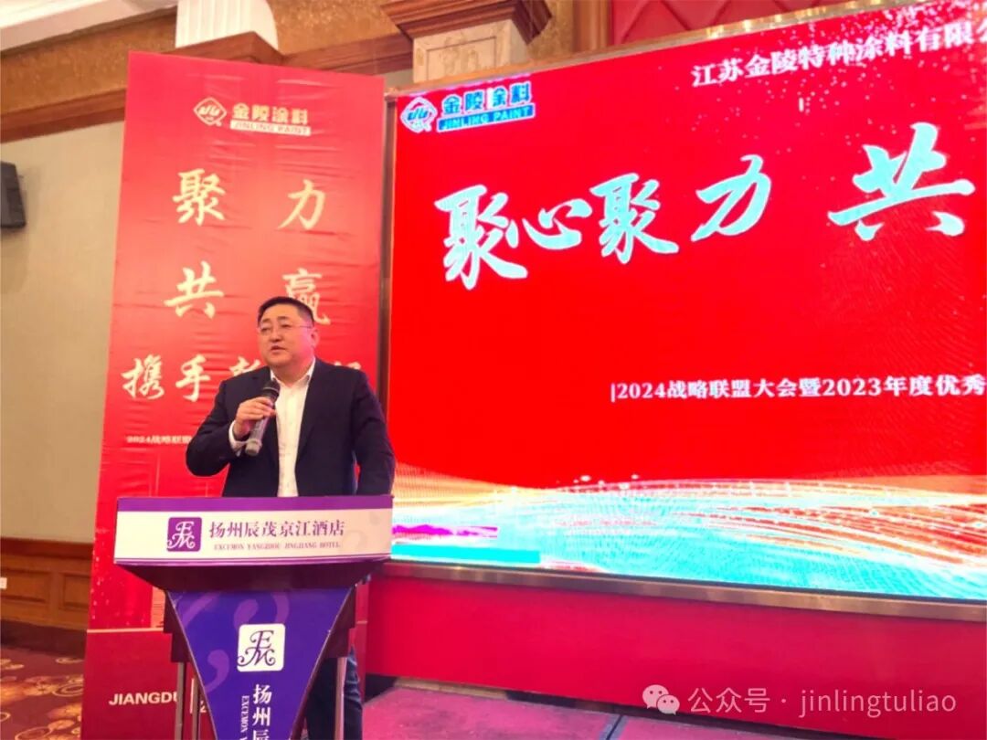 副總經(jīng)理辛立文主要圍繞強(qiáng)化品牌輸出,強(qiáng)化營(yíng)銷管理體系,強(qiáng)化營(yíng)銷團(tuán)隊(duì)建設(shè),強(qiáng)化經(jīng)銷商市場(chǎng)基礎(chǔ),強(qiáng)化廠商協(xié)同發(fā)展,強(qiáng)化激勵(lì)創(chuàng)新機(jī)制等全面闡述了金陵涂料的新征程浩然開(kāi)啟,面對(duì)當(dāng)下新發(fā)展、新趨勢(shì)、新機(jī)遇,金陵涂料將同廣大經(jīng)銷商伙伴一同解鎖時(shí)代密碼,共享新機(jī)遇下的時(shí)代商機(jī)。