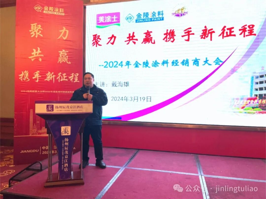 2024年3月19日,金陵涂料2024年度戰(zhàn)略聯(lián)盟暨2023年度優(yōu)秀經(jīng)銷商頒獎(jiǎng)典禮在京江大酒店召開(kāi)。首席顧問(wèn)卞大榮,副董事長(zhǎng)、黨支部書(shū)記卞直兵,總經(jīng)理戴海雄及全國(guó)經(jīng)銷商代表齊聚一堂,共商未來(lái)。